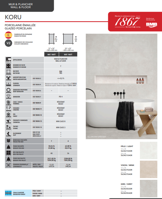 | 12” x 24” | 13.22 Sq.ft/box |